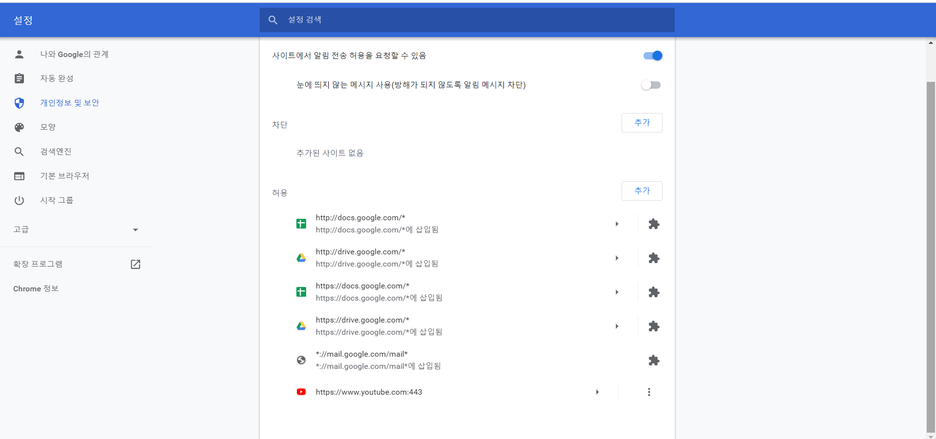 그리고 개인정보 및 보안에서