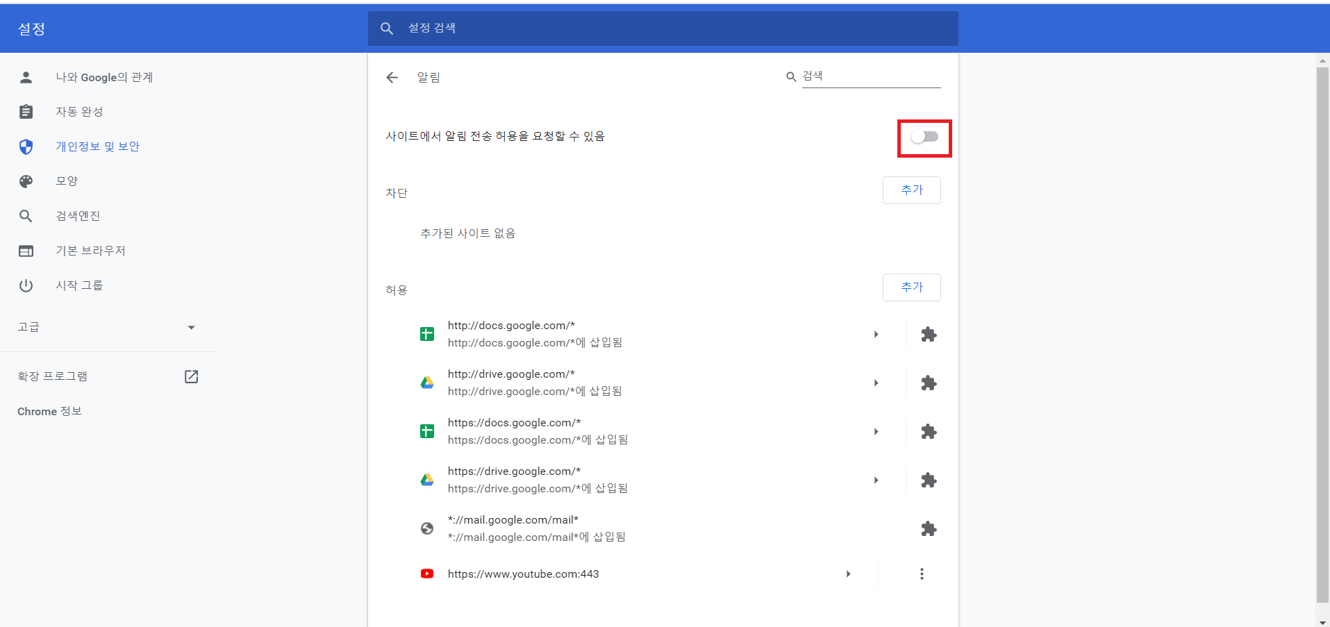 이러면 알림이 꺼진겁니다.
