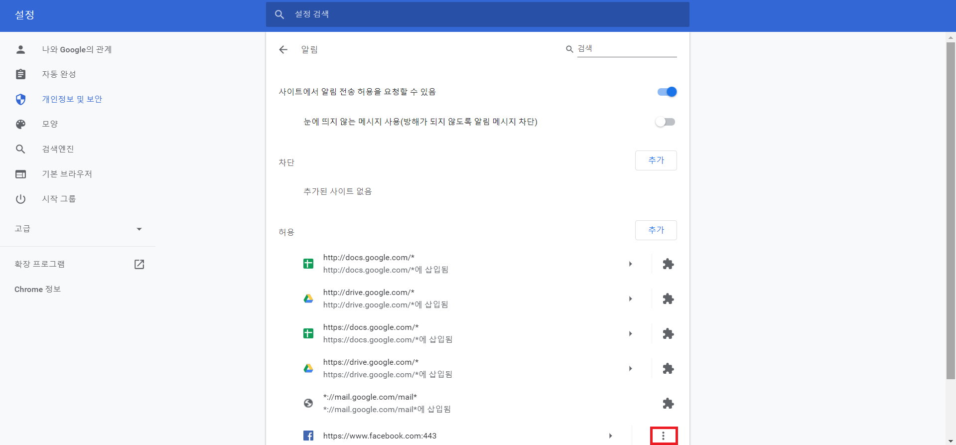 만약 페이스북 알림이 뜨는데, 그것만 안뜨게 하고 싶다.