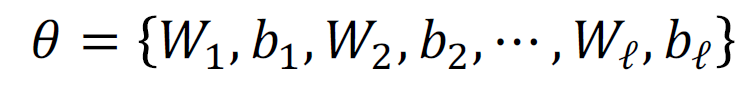 이걸 딥 뉴럴 네트워크에 대입하면 다음과 같이 가중치 W와 편향 b를 찾는 것이 된다.