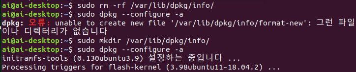 Operating System : Ubuntu 18.04.LTS - Raspberry pi 4 일단 이 E: Sub-process /usr/bin/dpkg returned an error code (1) 오류가 뜨면 dpkg 든 apt든 기능이 모두 죽는다. install 자체가 안되기 때문에 패키..